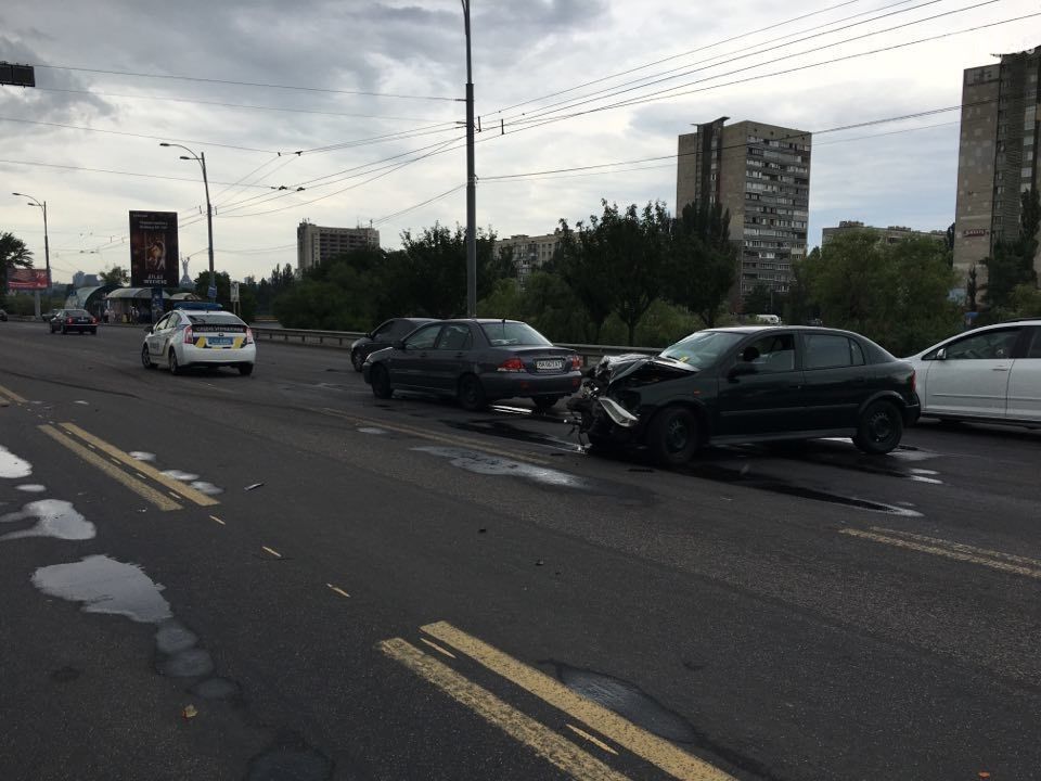 Из-за ДТП образовался небольшой затор. Авария произошла в 9 утра при участии двух авто. Водитель из Черкасской области ехал на "Славуте" на железнодорожный вокзал, встречать с поезда жену и ребенка, когда в него влетела машина Opel.
