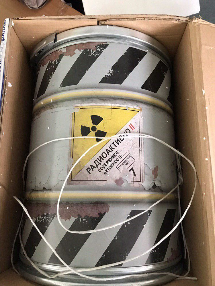 В одной из коробок лежала бочка с надписью "Радиоактивно".