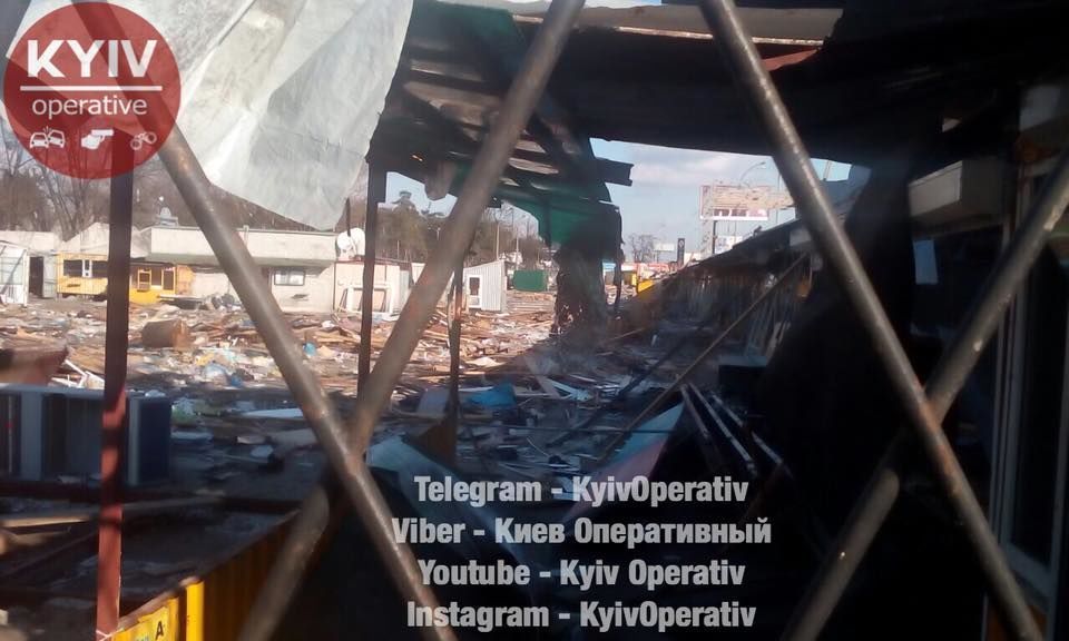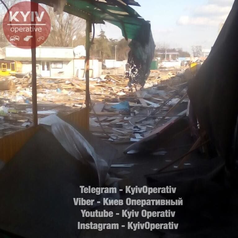 Как видно на фотографиях, земля усеяна обломками торговых павильонов.