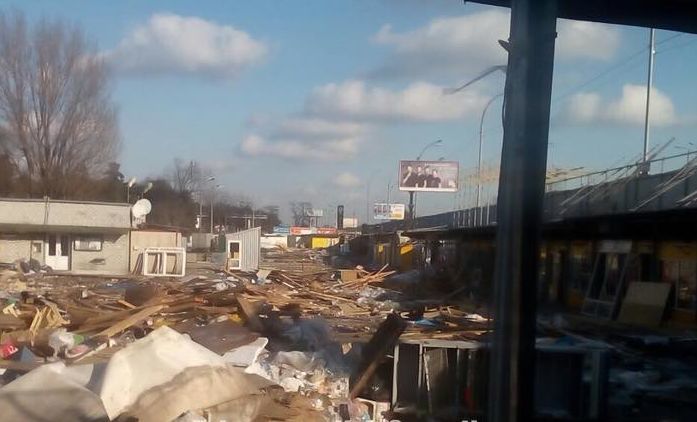 В Киеве на рынке возле станции метро "Лесная" демонтировали большое количество МАФов.