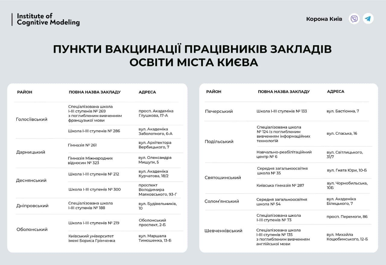 В Киеве заработали 17 пунктов вакцинации для педагогов: адреса