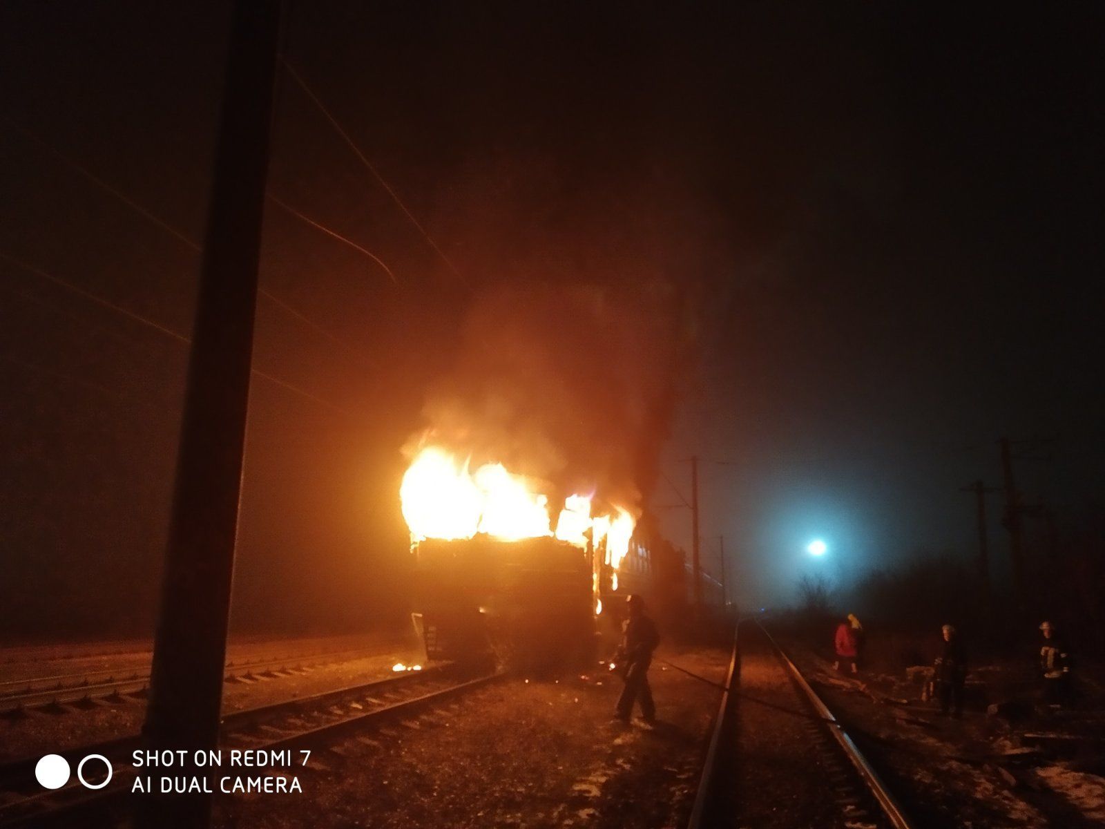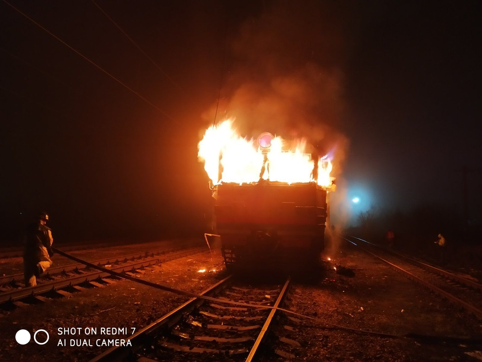 18 декабря в 2:03 в оперативно-диспетчерскую службу Яготинского района поступило сообщение о возгорании хвостового вагона электропоезда в поселке Яготин.