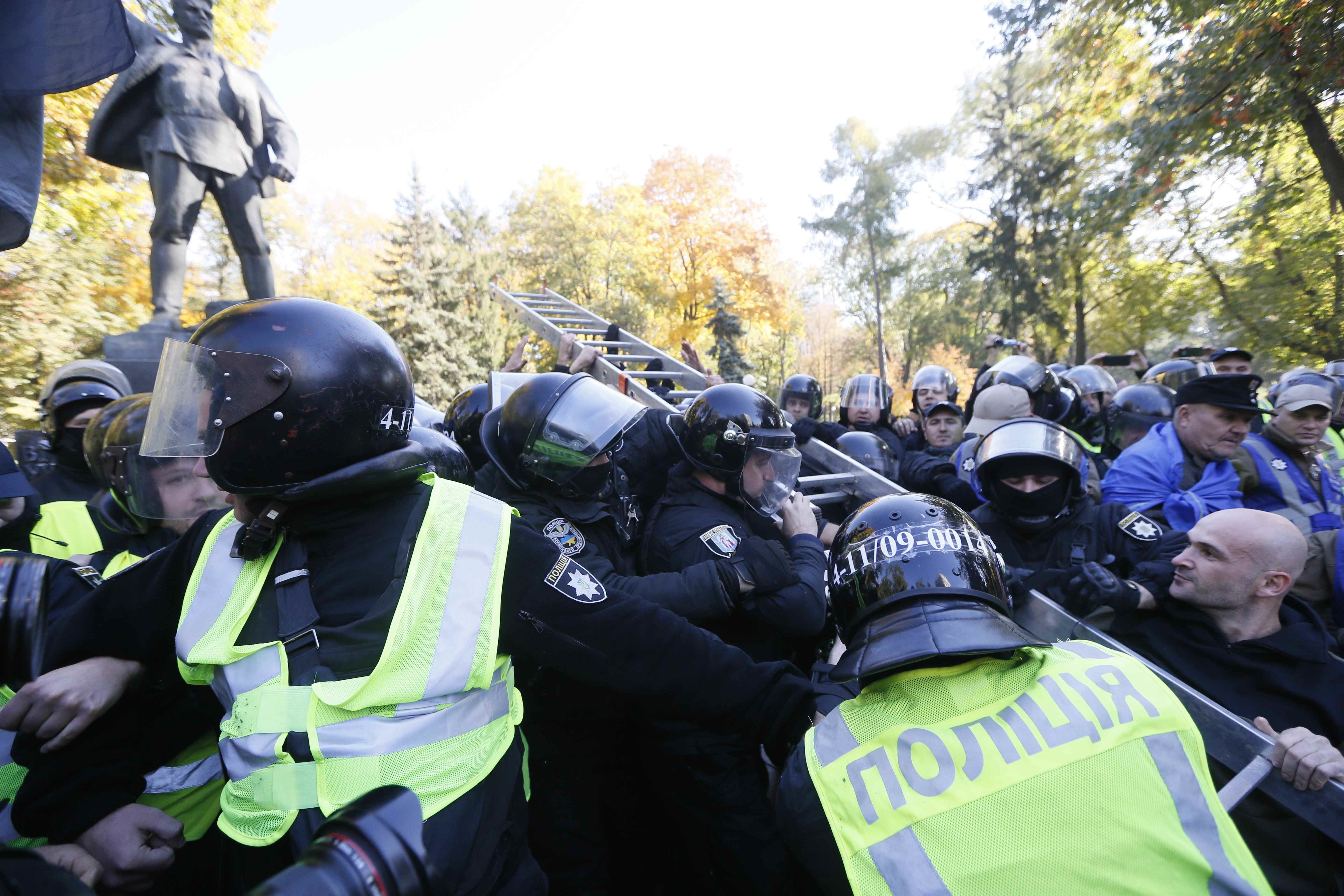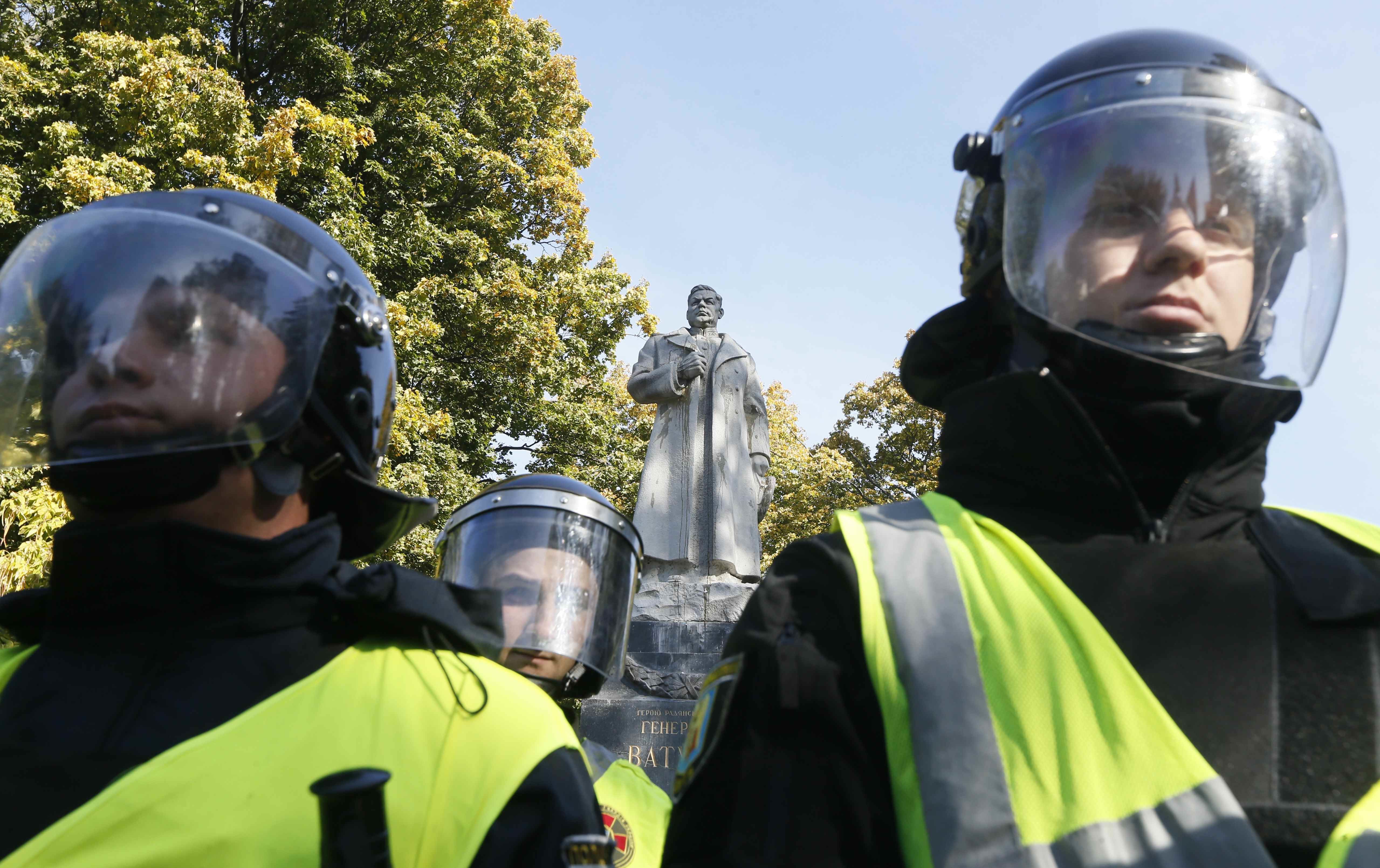 Нагадаємо, раніше 14 жовтня в Маріїнському парку кілька десятків активістів спробували знести пам'ятник Миколі Ватутіну в Маріїнському парку, який охороняли правоохоронці.