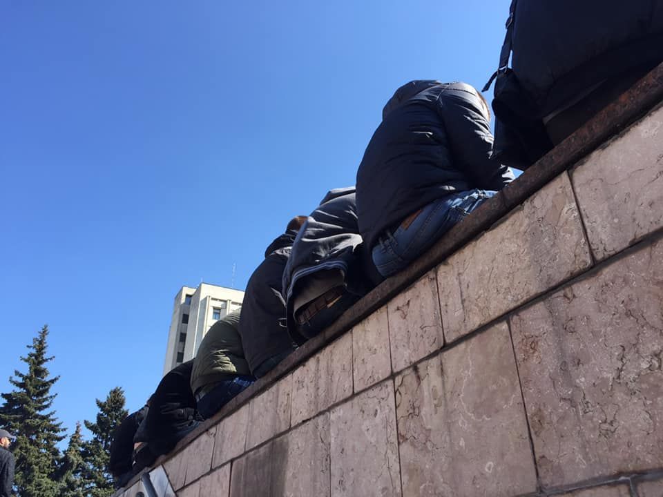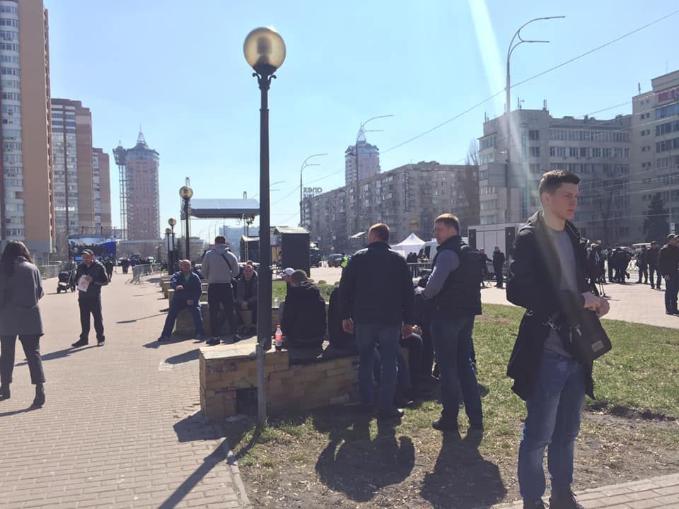 У центрі Києва на площі біля Центральної виборчої комісії під час виборів президента України зібралися молоді чоловіки.