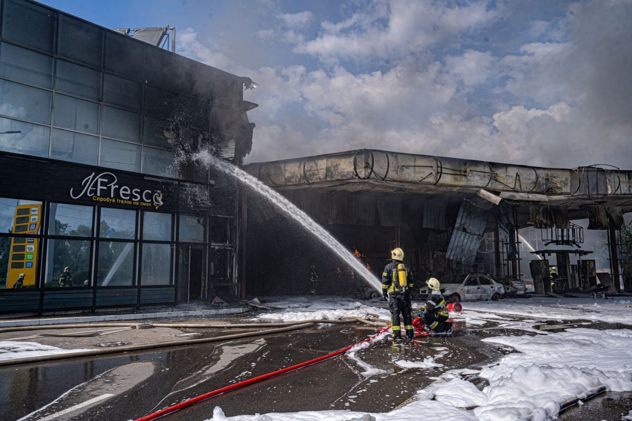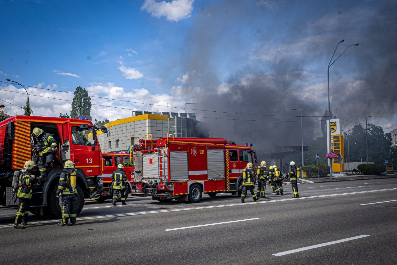 Рятувальники ліквідували масштабну пожежу на АЗС у Дніпровському районі Києва, яка сталася у неділю, 9 липня, унаслідок того, що в заправку влетів автомобіль.